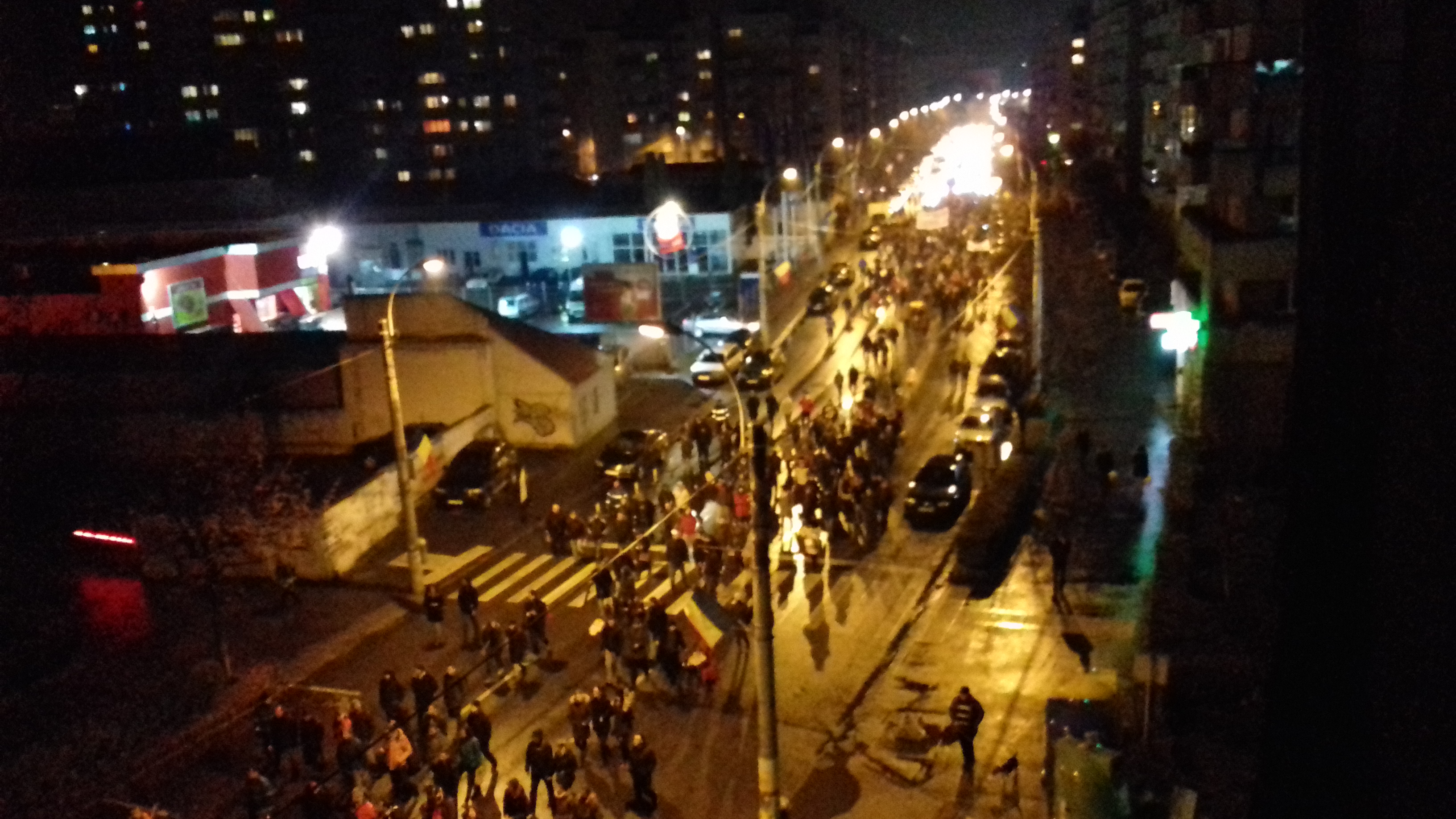 20.30. Am ajuns pe Bulevardul 21 Decembrie. Se striga „nu vrem sa fim conduși de hoti!”