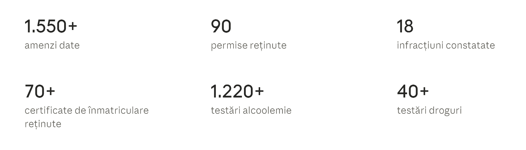 Acțiunile au acoperit întreg județul și au implicat echipe din cadrul Serviciului Rutier, Biroului Rutier Cluj-Napoca, dar și polițiști din Turda, Câmpia Turzii, Gherla, Dej și Huedin. Principalele ținte au fost viteza excesivă, conducerea sub influența alcoolului sau a drogurilor și alte abateri cu risc ridicat de accident. Peste o sută de amenzi au vizat în mod specific lipsa luminilor de zi sau defecțiunile la sistemul de iluminare al mașinilor. De asemenea, au fost reținute peste 70 de certificate de înmatriculare. Polițiștii au folosit aparatele etilometru în peste 1.220 de cazuri, dar nu au precizat câți șoferi au fost depistați beți la volan; testele DrugTest au fost aplicate în peste 40 de situații.
