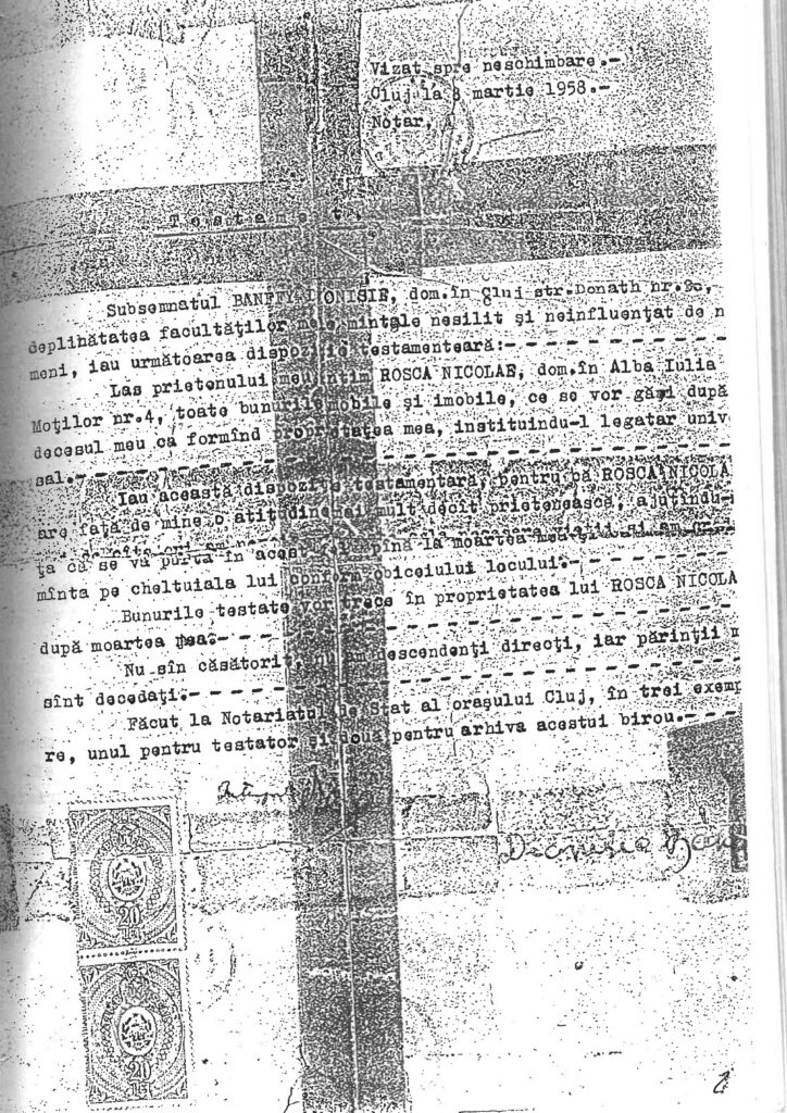 Palatul Bánffy din Cluj-Napoca, o emblemă a arhitecturii baroce din Europa Centrală, a fost retrocedat în proporție de trei sferturi moștenitorilor lui Nicolae Roșca, un negustor din Săliște, județul Sibiu. În anii 1940, Roșca a devenit proprietar al unei părți semnificative din palat, după ce l-a împrumutat pe Dionisie Bánffy, fiul lui Albert Bánffy, care nu a reușit să-și achite datoriile și a oferit în schimb apartamente din clădire.