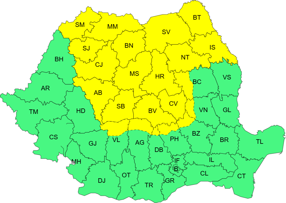 Avertizarea cod galben de temperaturi deosebit de scăzute pentru mai multe județe din Transilvania, inclusiv Clujul, e extinsă azi de Administrația Națională de Meteorologie, până mâine dimineață la ora 10.