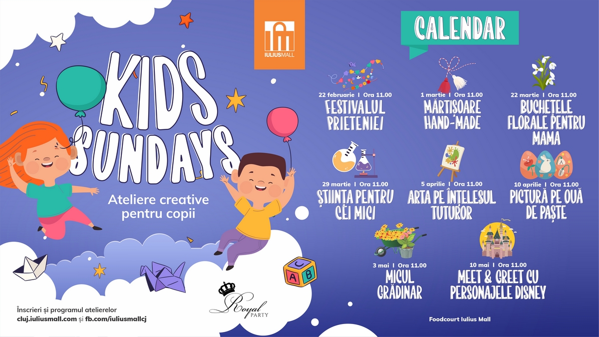 Sâmbătă și duminică, copiii sunt așteptați la Iulius Mall cu evenimente speciale, unde imaginația prinde forme și culori. Piesa de teatru „Cei trei purceluși” va fi pusă în scenă de simpaticele păpuși sâmbătă, de la ora 11.00, în zona food court. Duminică, de la ora 11.00, celebrăm ziua prieteniei, iar micii creatori sunt invitați să picteze, decupeze și să lipească cele mai originale felicitări. Participarea la ambele evenimente este gratuită, iar mânuțele pline de culori sau lipici și curiozitatea sunt un must have pentru fiecare participant.