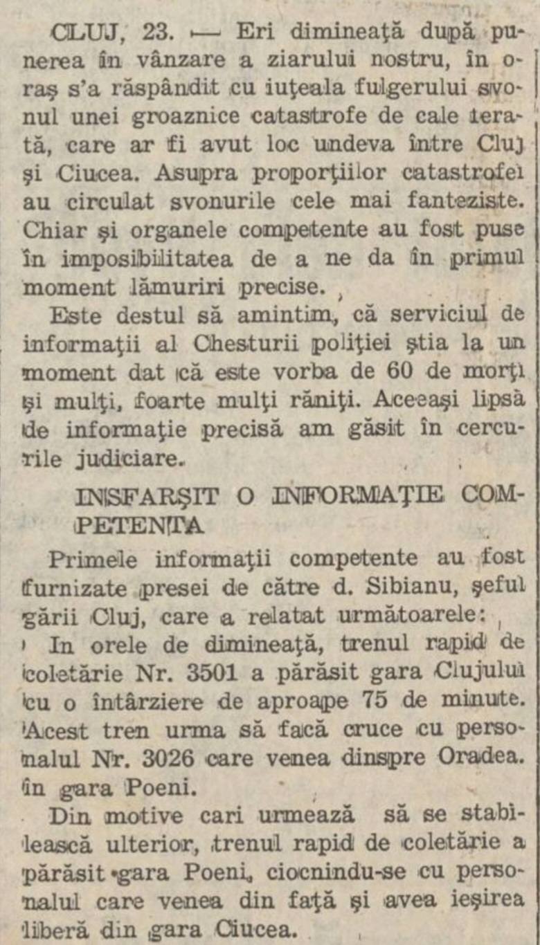 Tragedia din Cluj din urmă cu 100 de ani: două trenuri s-au ciocnit frontal, 9 morți și 18 răniți, pagube de milioane