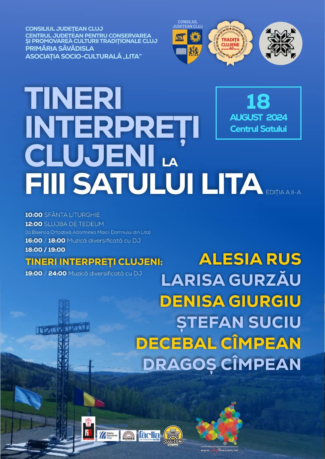 ”Acest eveniment promite două zile de activități culturale și de divertisment, menite să celebreze tradițiile și comunitatea locală”, arată organizatorii. Sâmbătă, 17 august 2024, manifestările vor debuta cu întreceri sportive, care vor aduce împreună locuitorii satului și invitați din împrejurimi. După-amiaza, centrul satului Lita va găzdui un spectacol de muzică populară, care va reuni artiști consacrați, alături de talente locale. Duminică, 18 august 2024, ziua va începe cu o slujbă religioasă și o alta de Te Deum, urmate de un spectacol folcloric. Printre artiștii care vor evolua pe scena evenimentului se numără și tinerii interpreți clujeni Alesia Rus, Larisa Gurzău, Denisa Giurgiu, Ștefan Suciu, Decebal Cîmpean și Dragoș Cîmpean.